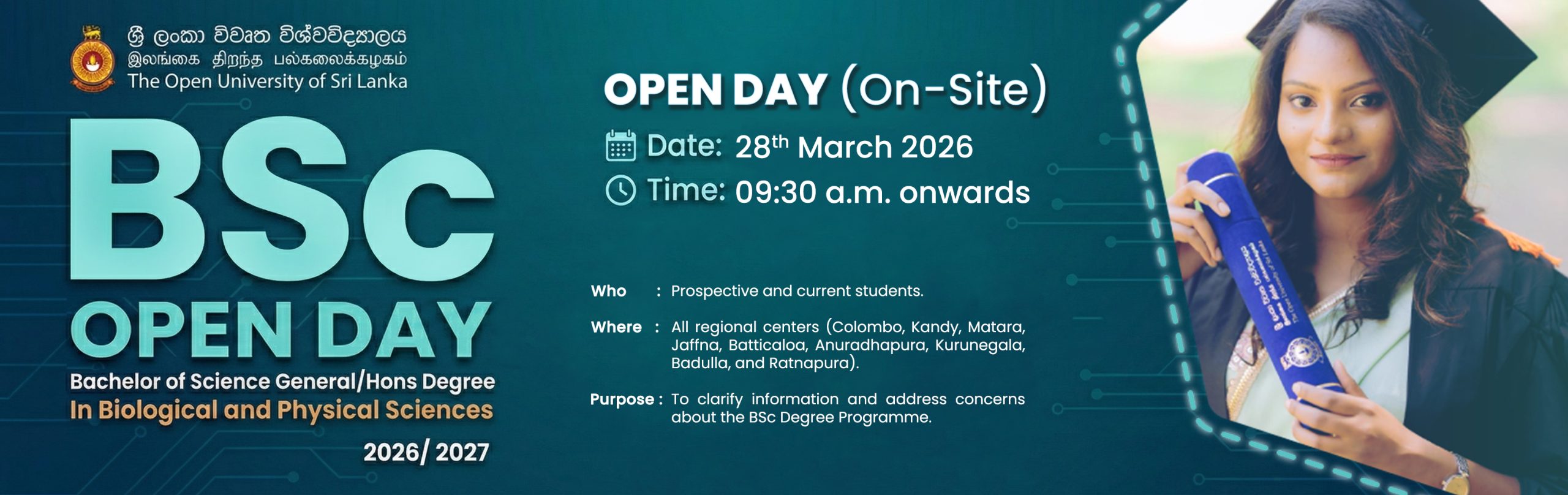 OUSL ensures accessible quality education for diverse students through nine (09) Regional Centers and eighteen (18) Study Centers nationwide.