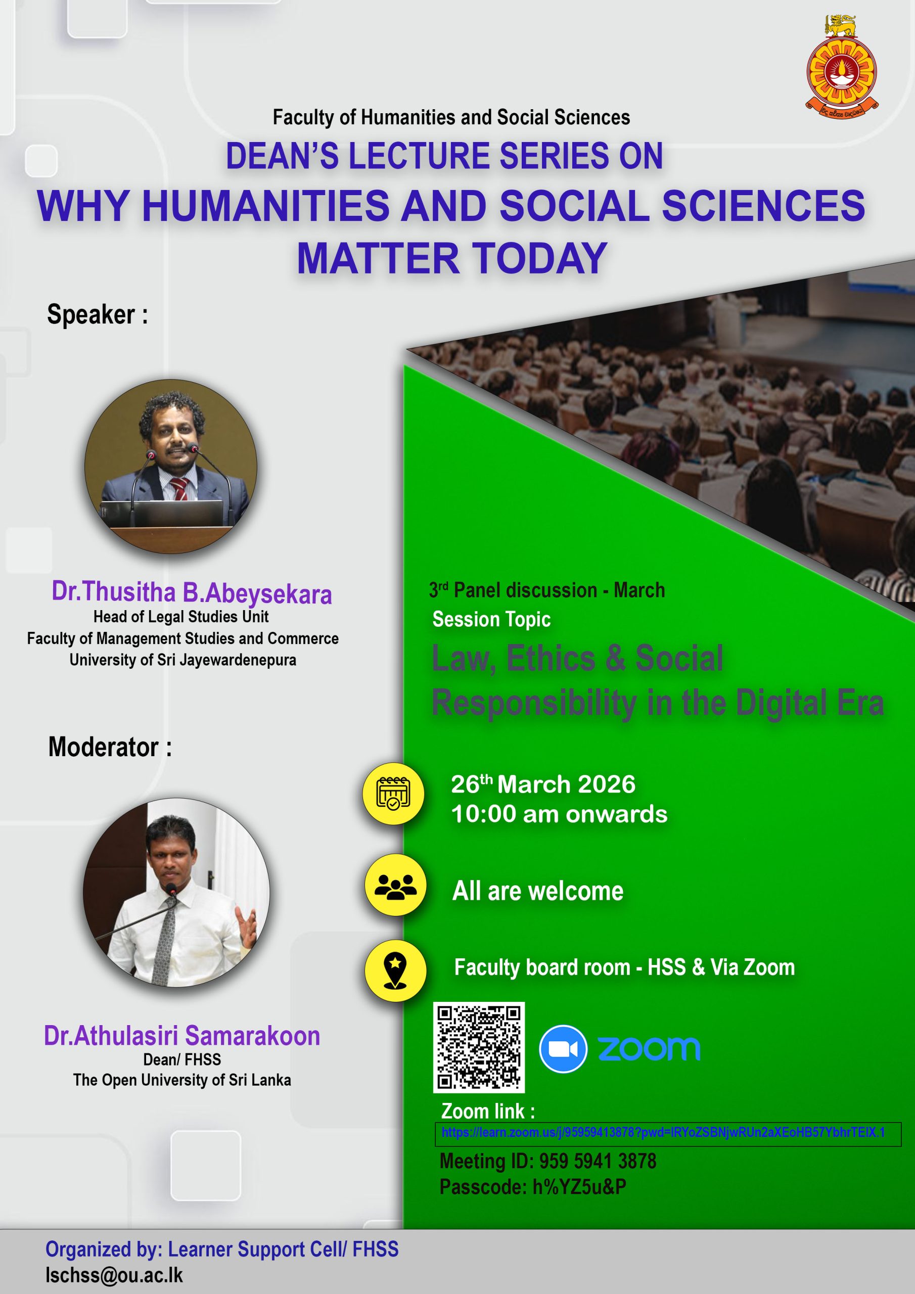 Academic Coordinator Dean’s office FHSS Office: Email:lschss@ou.ac.lk / waowa@ou.ac.lk |