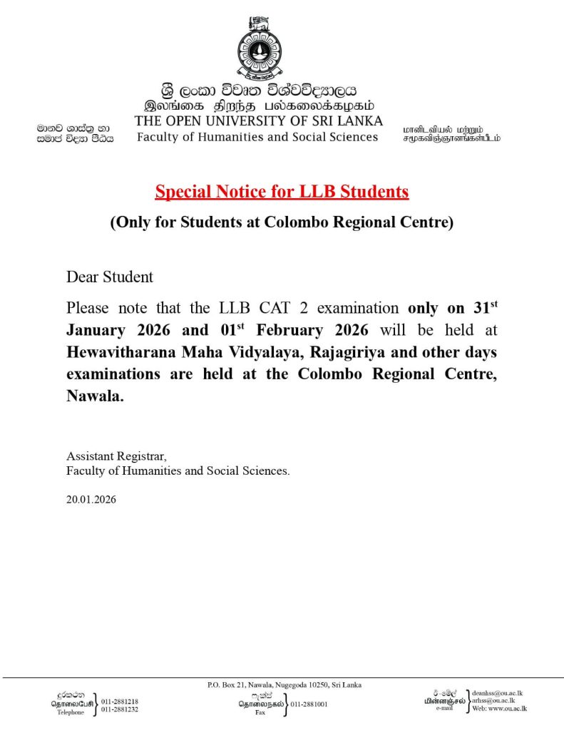 Special Notice for LLB Students