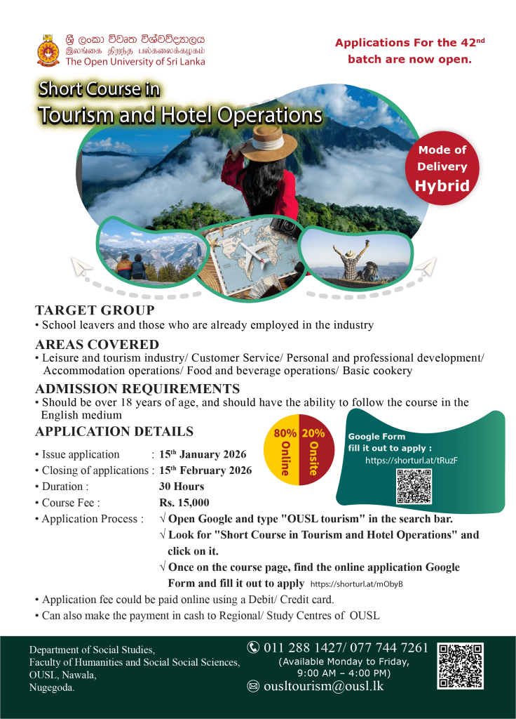 This Certificate programme is conducted by the Department of Social Studies, Faculty of Humanities and Social Sciences. Contact the Coordinator, Mr. M.N.L. Lantra for further details.